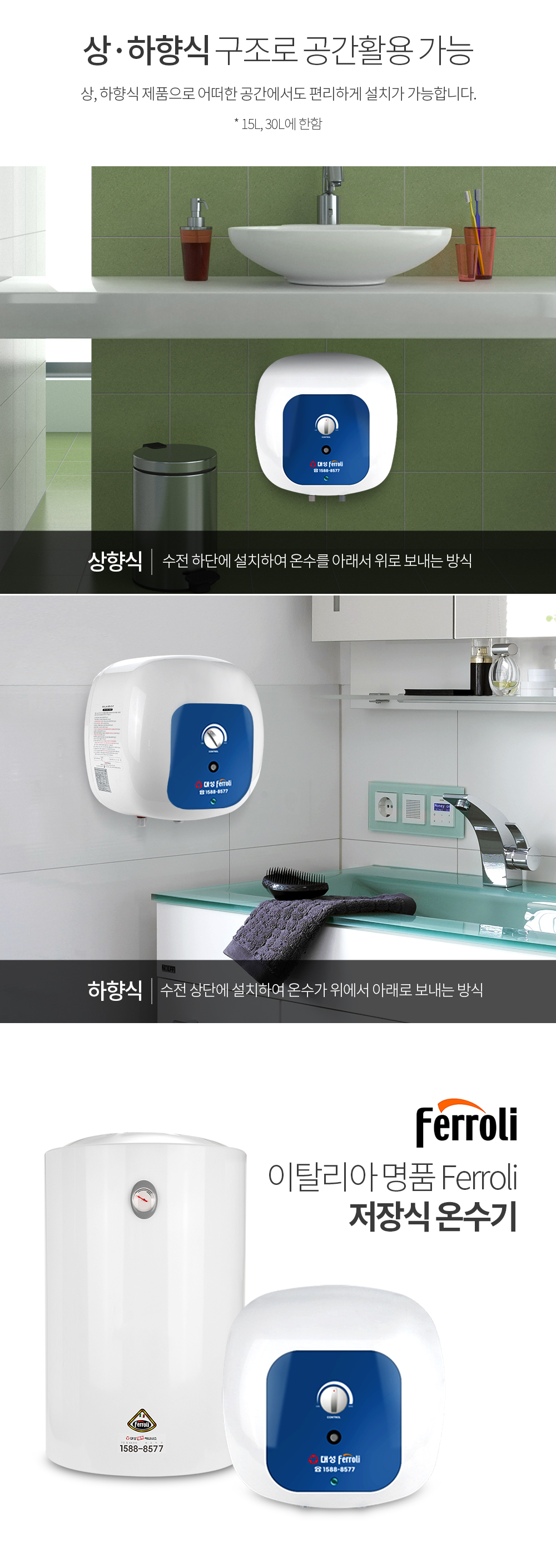 대성 스텐 전기온수기 RZS-15(OS/US) 15리터 벽걸이 온수기