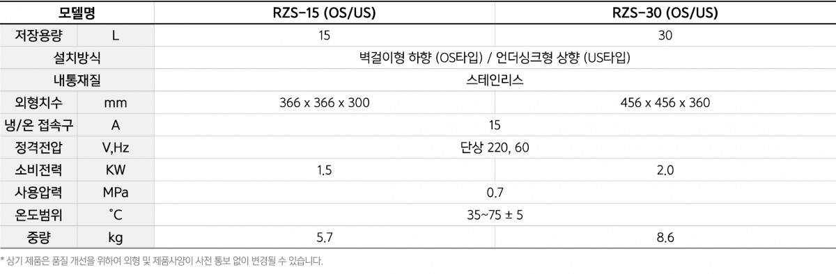 대성 스텐 전기온수기 RZS-30(OS/US) 30리터 벽걸이 온수기