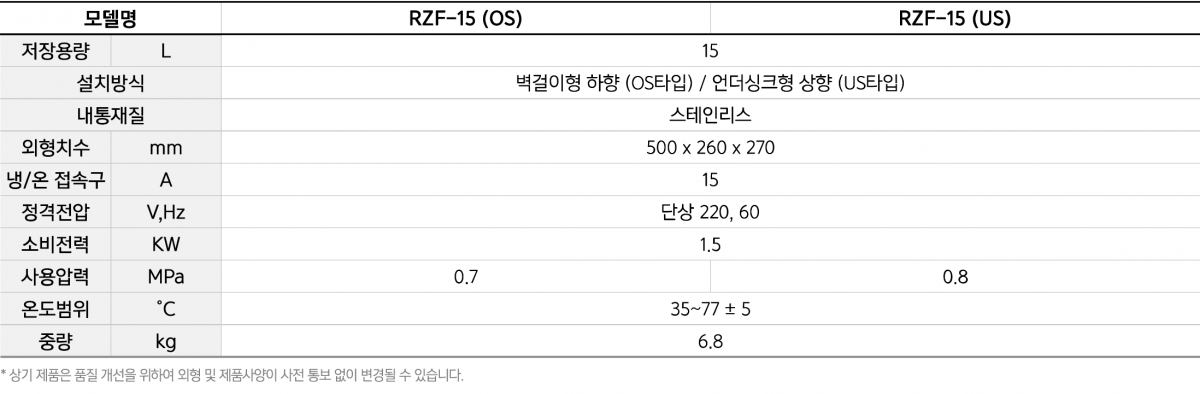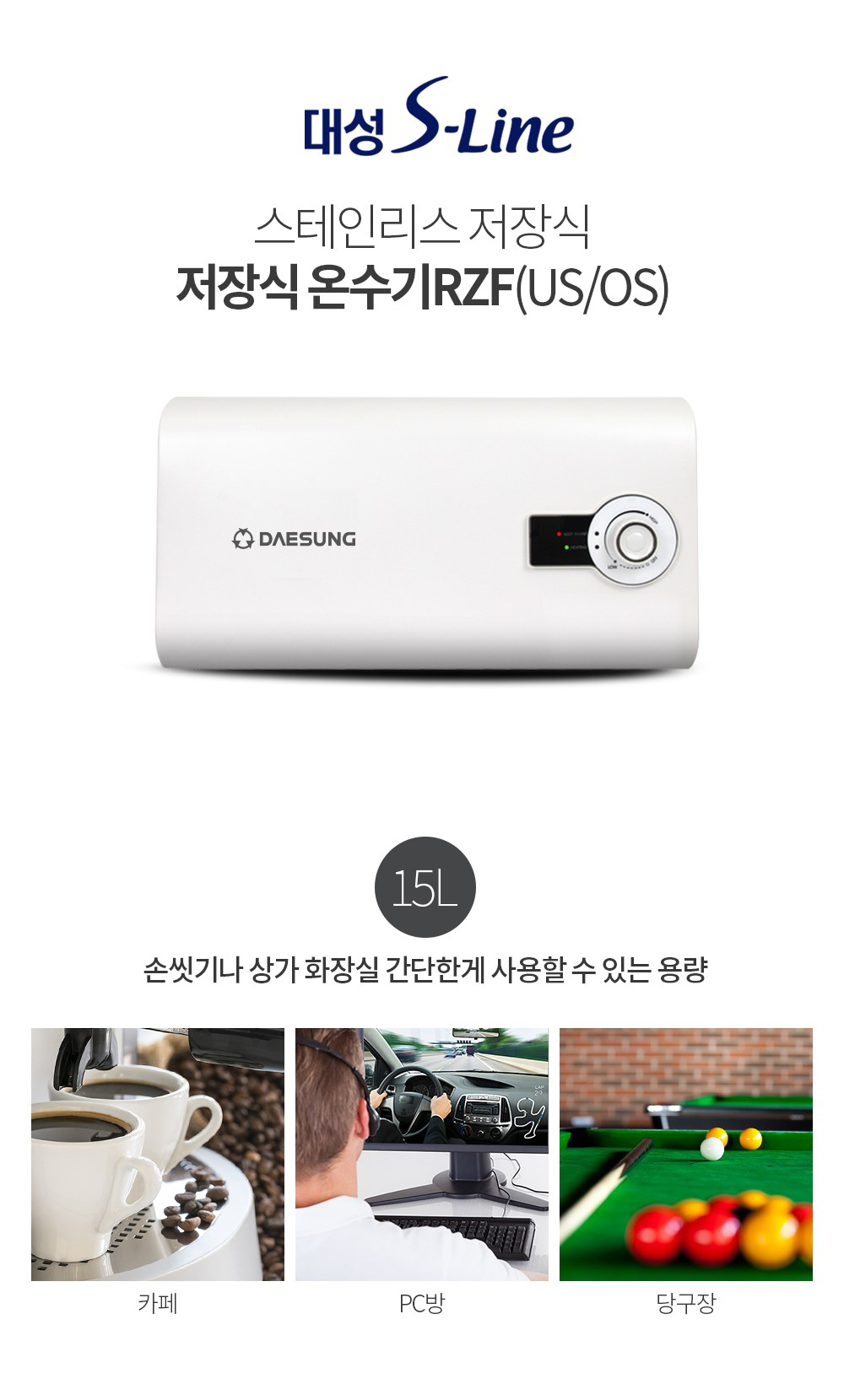 대성 스텐 전기온수기 RZS-30(OS/US) 30리터 벽걸이 온수기