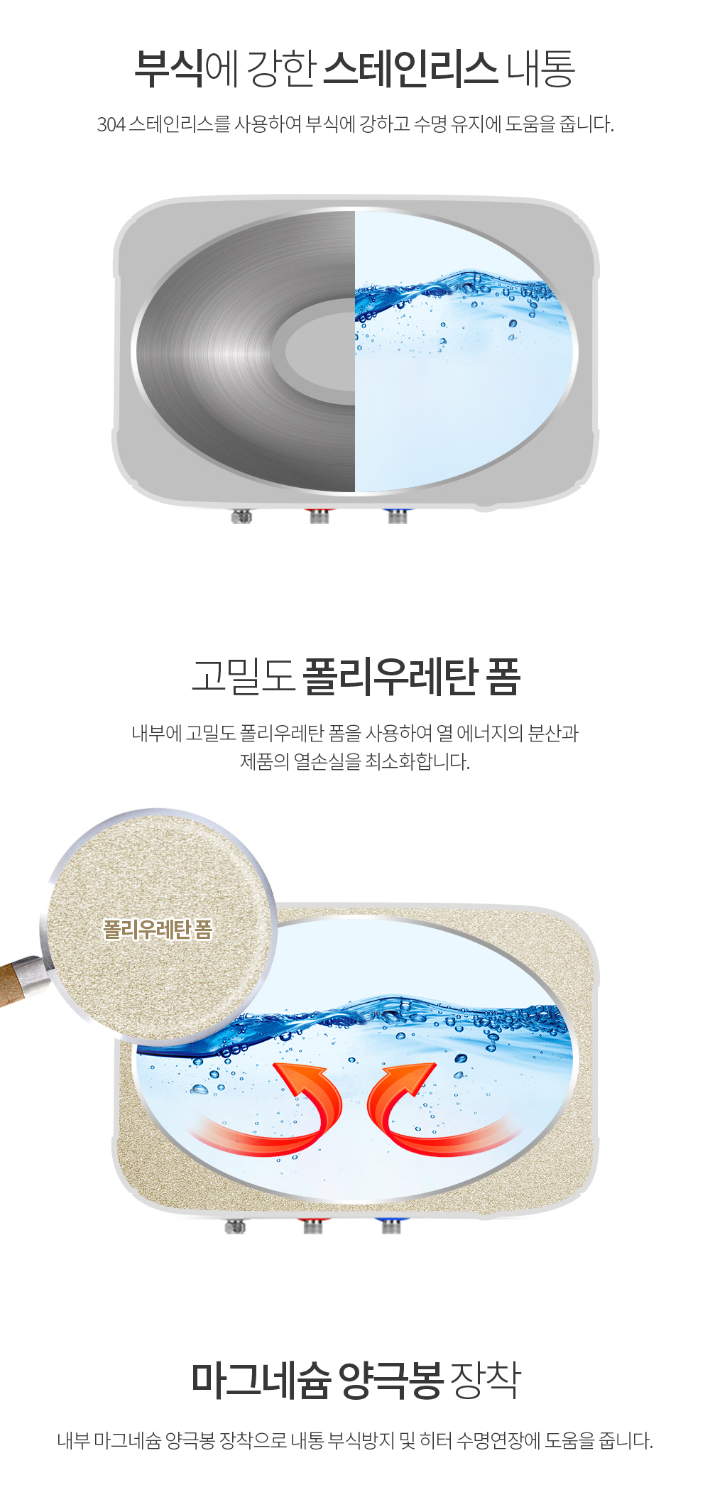 대성 스텐 전기온수기 RZL-50 50리터 세로형 하향식 벽걸이